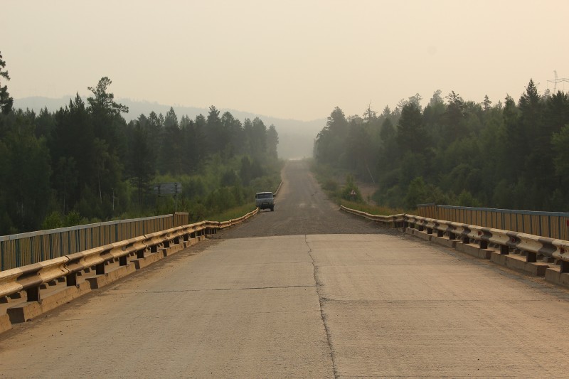 Между Кодинском и Богучанами – гравийка. Сначала показалась хорошей, но потом увидел, как по ней едут легковушки — когда начинается «стиральная доска» они становятся не управляемыми, толком не тормозят и не рулятся – УАЗ более менее управляется. Только часто появлялось чувство, что УАЗик зарывается. Сказать, что дорога пыльная – ни чего не сказать.