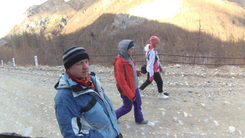 Позавтракали, собрались в дорогу, намазали на лицо толстый слой крема против загара и выдвинулись. По дороге постоянно сновали туда-сюда квадроциклы и бураны (из снегоходов были только бураны, то ли другие не приживаются, то ли еще на другие не заработали), изредка попадались лыжники и сноубодисты. Лесник который подходил к нам, тоже пошел наверх, и когда видел дым от костра, шел на него, но видимо никого не штрафовал, а только пока предупреждал, потому как у стрелки мы оказались почти одновременно – шустрый дядечка.