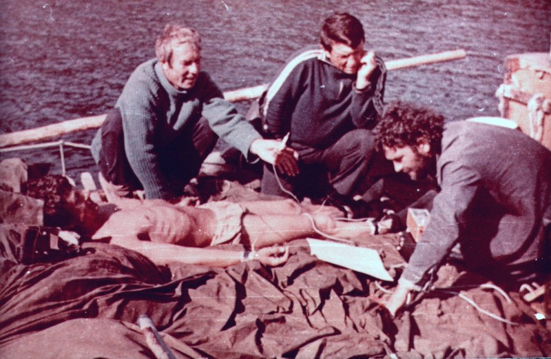 Начало спуска водолазов на дно реки (Литвин В.М., Зверев В.Д.)