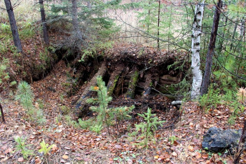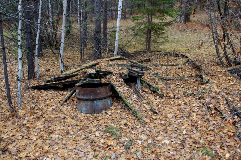 Нашли несколько еще не завалившихся строений, при желании можно материал с них использовать для восстановления зимовья.