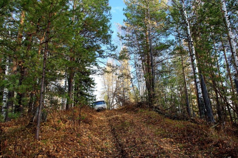Дорога вверх от Поливы сильно разбита, еле залезли в эту горку, уже хотели было лебедиться, но УАЗика закусило и он в нее залез сам. В конце горки остановились у бывшего кернохранилища.